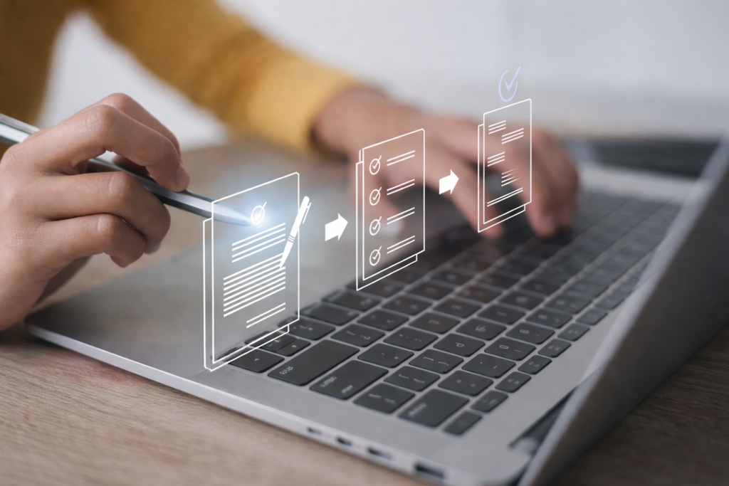 Começamos pelo entendimento do desafio e dos impactos, mapeando a dor, o processo atual e os pontos críticos de segurança, qualidade e produtividade. Em seguida, desenhamos a solução e o processo digital, definindo o fluxo futuro, as integrações necessárias e os critérios de sucesso.